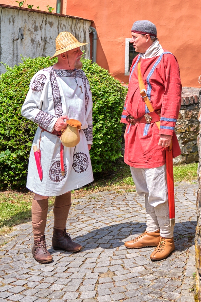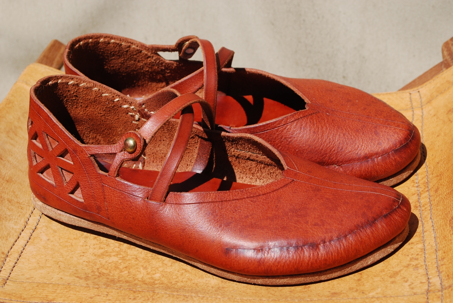 In den Schuhen trug man Socken oder die nach einem Fund aus Thorsberg bekannten Hosen, bei denen Füsslinge bereits mit angenäht waren.