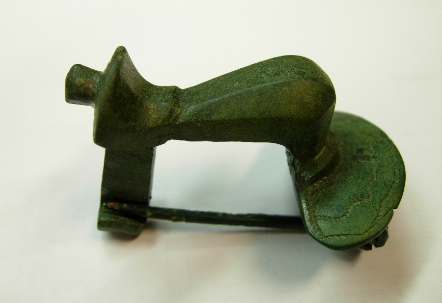 Fußfrgt. mit längsgestelltem Nadelhalter. Bronze.