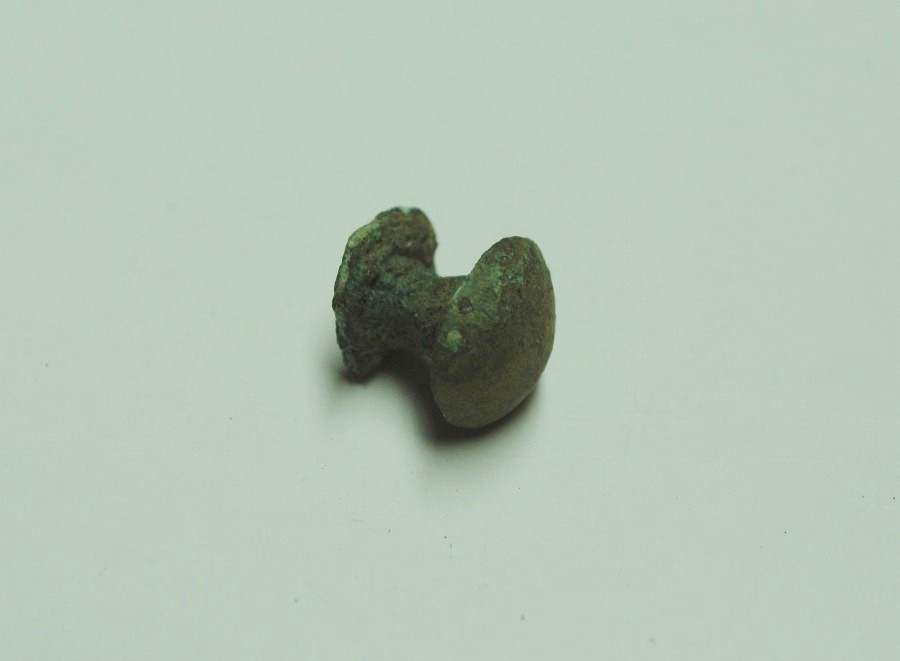 Doppelknopf mit gewölbter massiver Kopfplatte. Bronze.