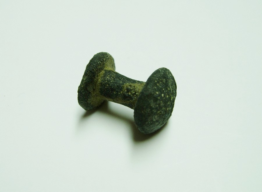 Doppelknopf mit leicht gewölbter massiver Kopf- und Fußplatte. Bronze.