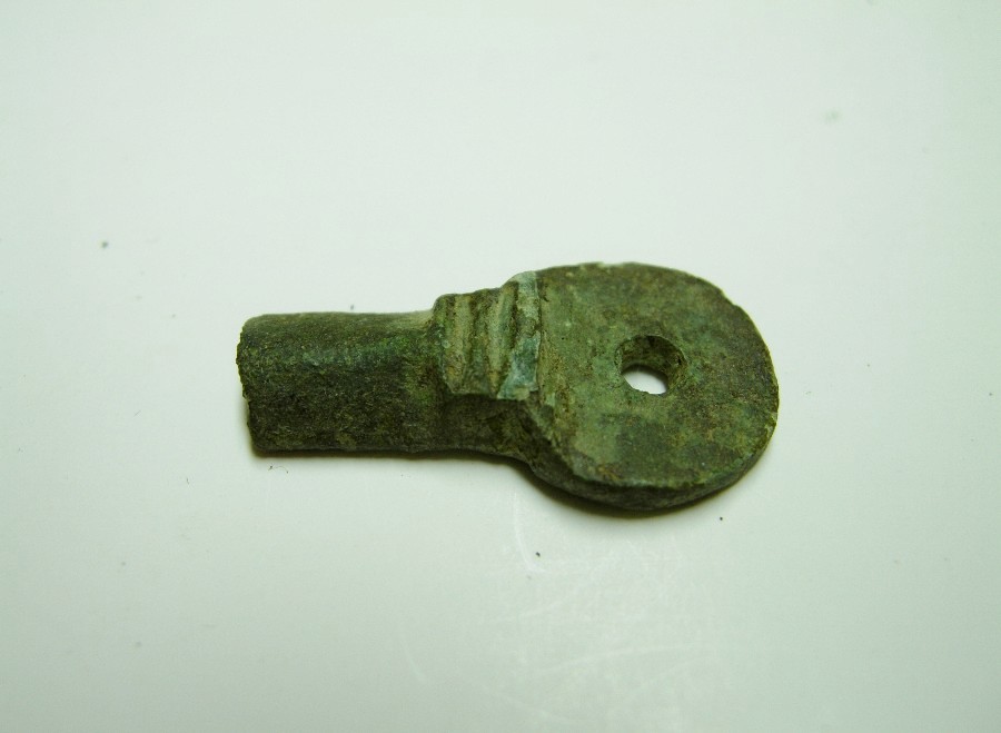L. 2,4 cm. Dm. Nietscheibe 1,3 cm. Bronze.